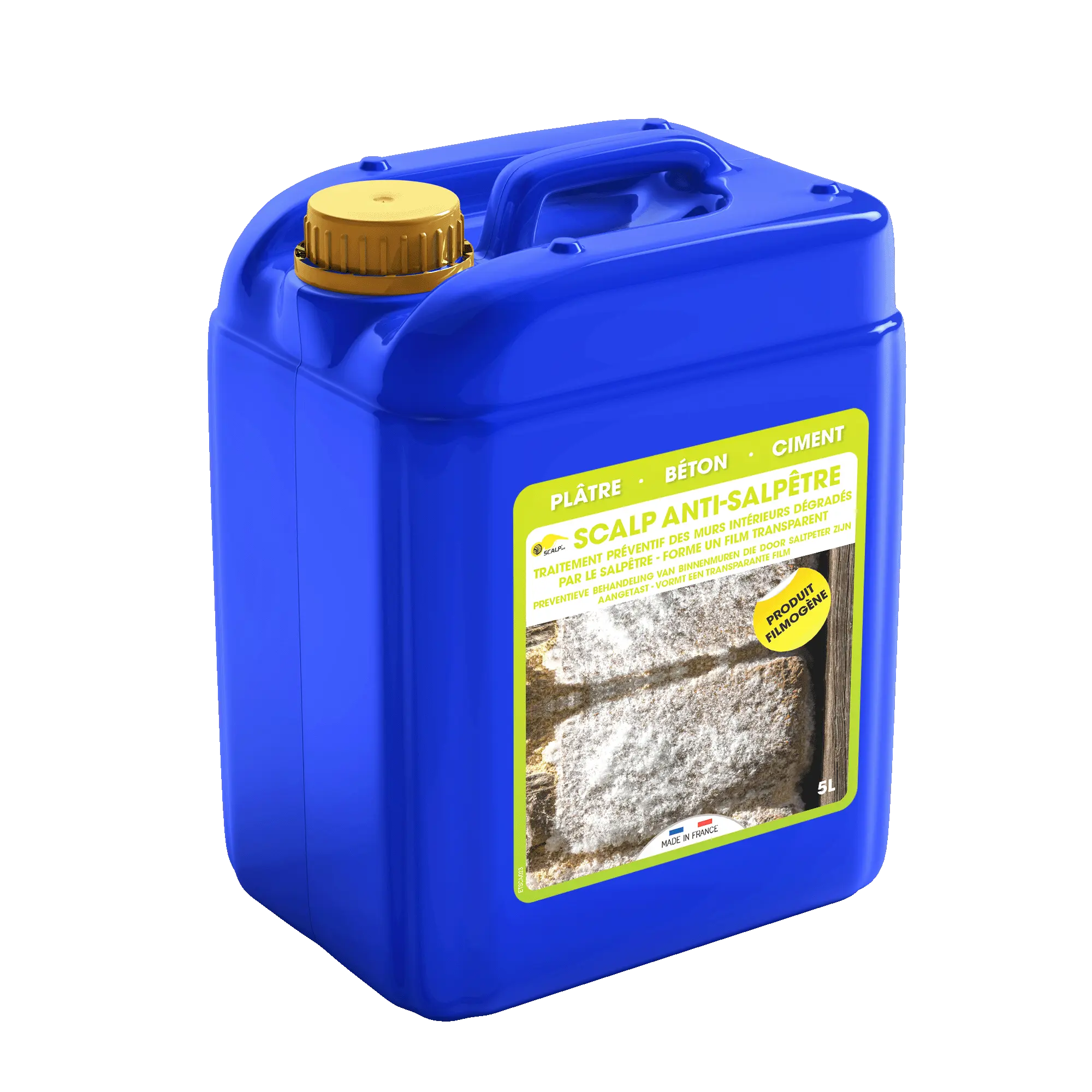 SCALP ANTI-SALPETRE es una solución profesional diseñada para eliminar permanentemente el salitre de las paredes y evitar que vuelva a aparecer. Gracias a su fórmula de triple acción, este tratamiento combina propiedades hidrófugas, consolidantes y bactericidas para limpiar a fondo las superficies de las paredes, ya sean de hormigón, ladrillo, piedra o yeso.